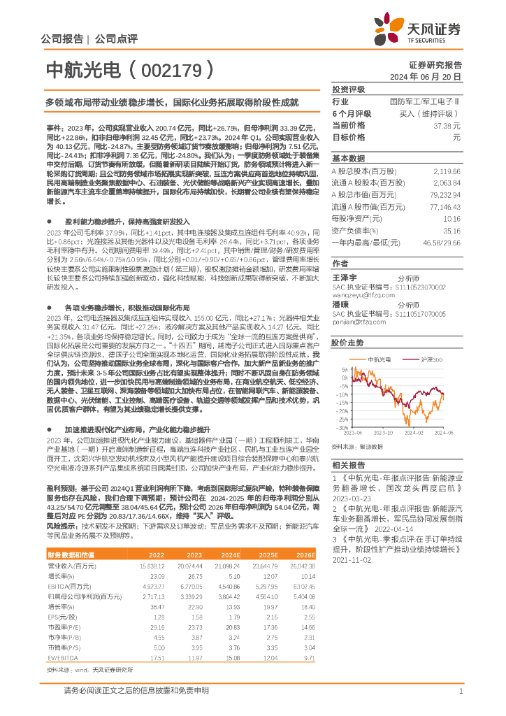 天风证券:中航光电(002179)-多领域布局带动业绩稳步增长,国际化业务拓展取得阶段性成就.pdf