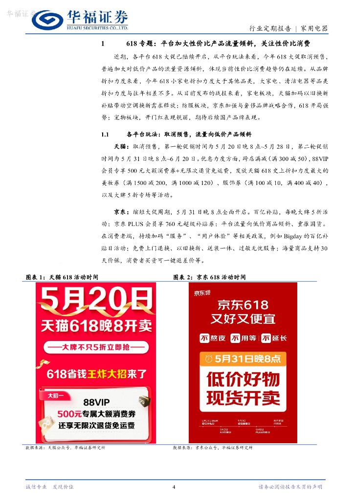 华福证券:家用电器行业24W21周观点:618专题,平台加大性价比产品流量倾斜,关注性价比消费.pdf