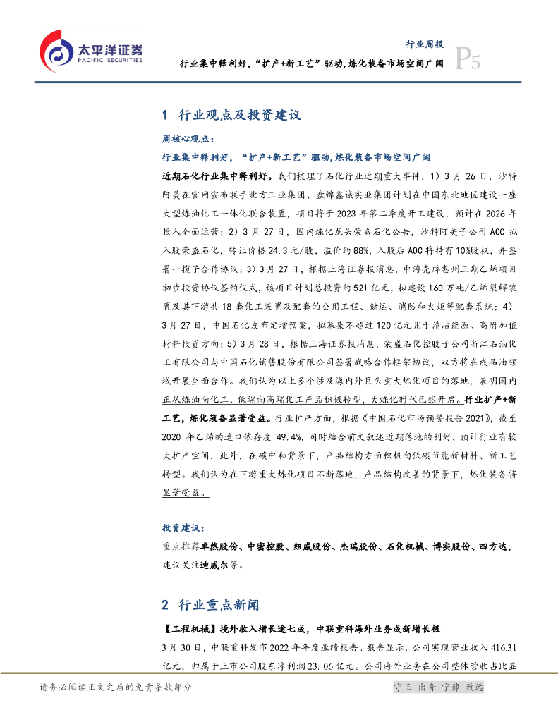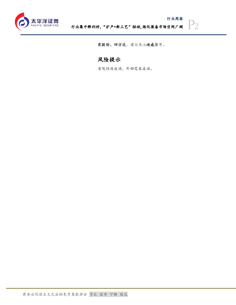 太平洋证券:机械设备行业周报:行业集中释利好,“扩产+新工艺”驱动,炼化装备市场空间广阔.pdf
