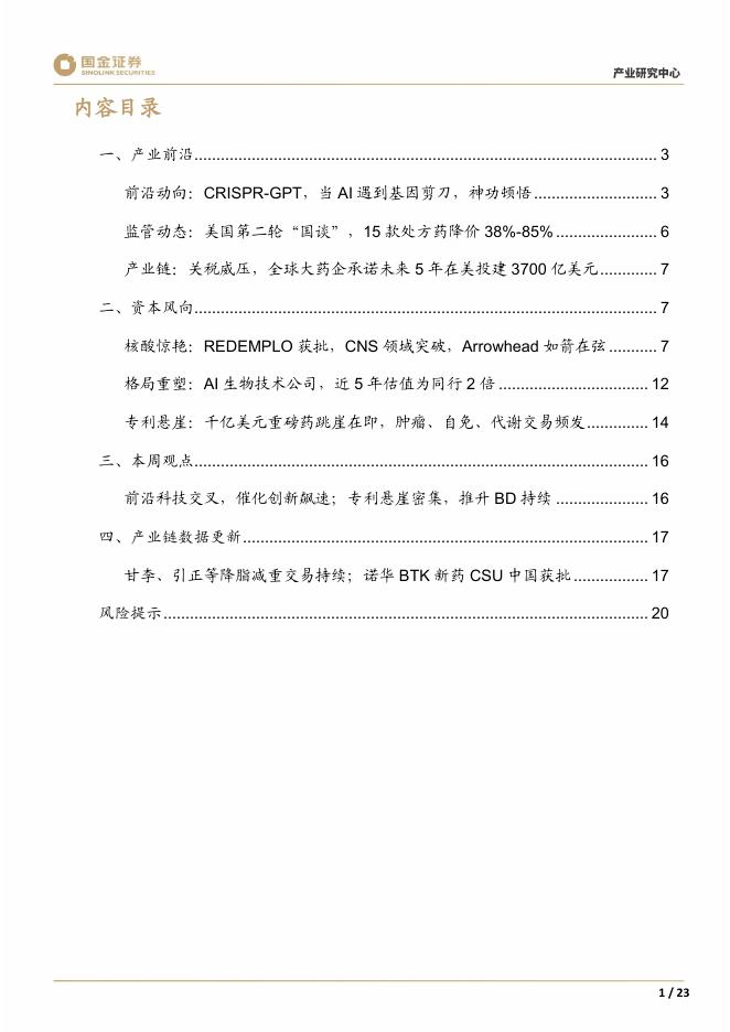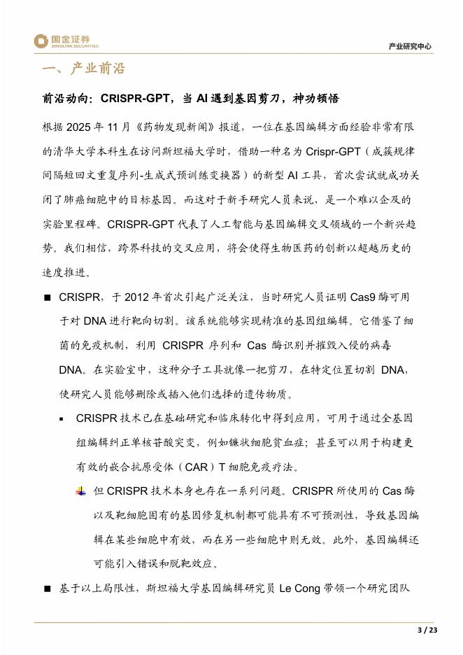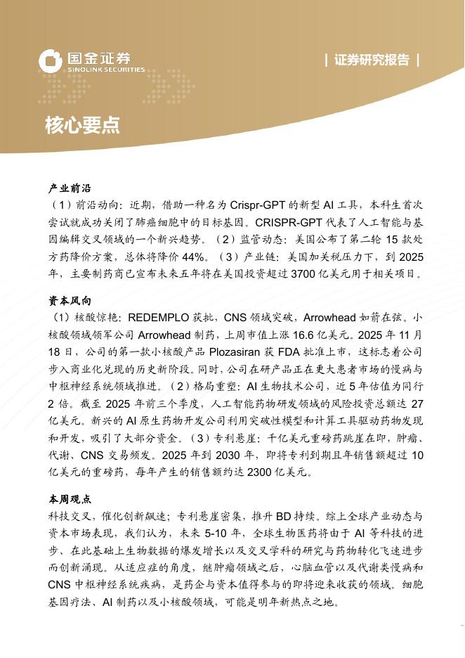国金证券:医药行业产业研究周报:AI遇到基因剪刀,创新飚速;小核酸进军慢病,如箭在弦.pdf