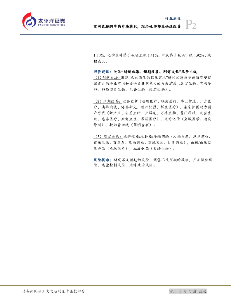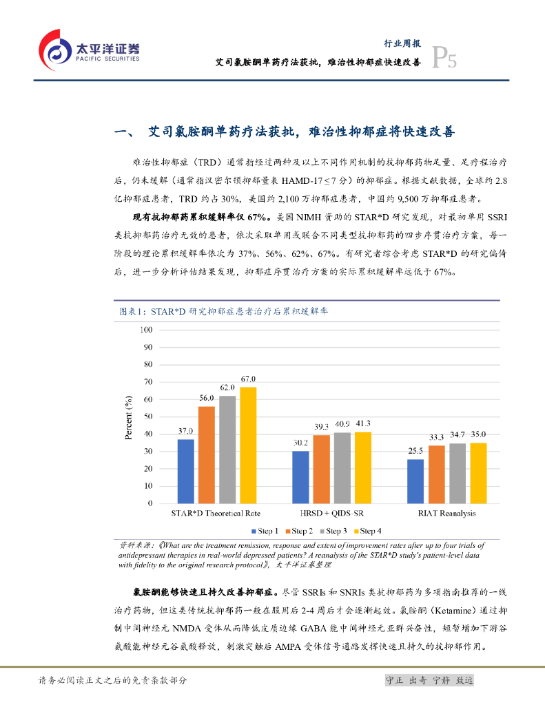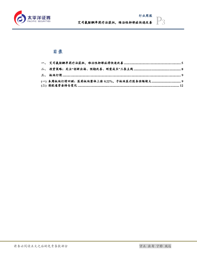 太平洋证券:医药行业周报:艾司氯胺酮单药疗法获批,难治性抑郁症快速改善.pdf