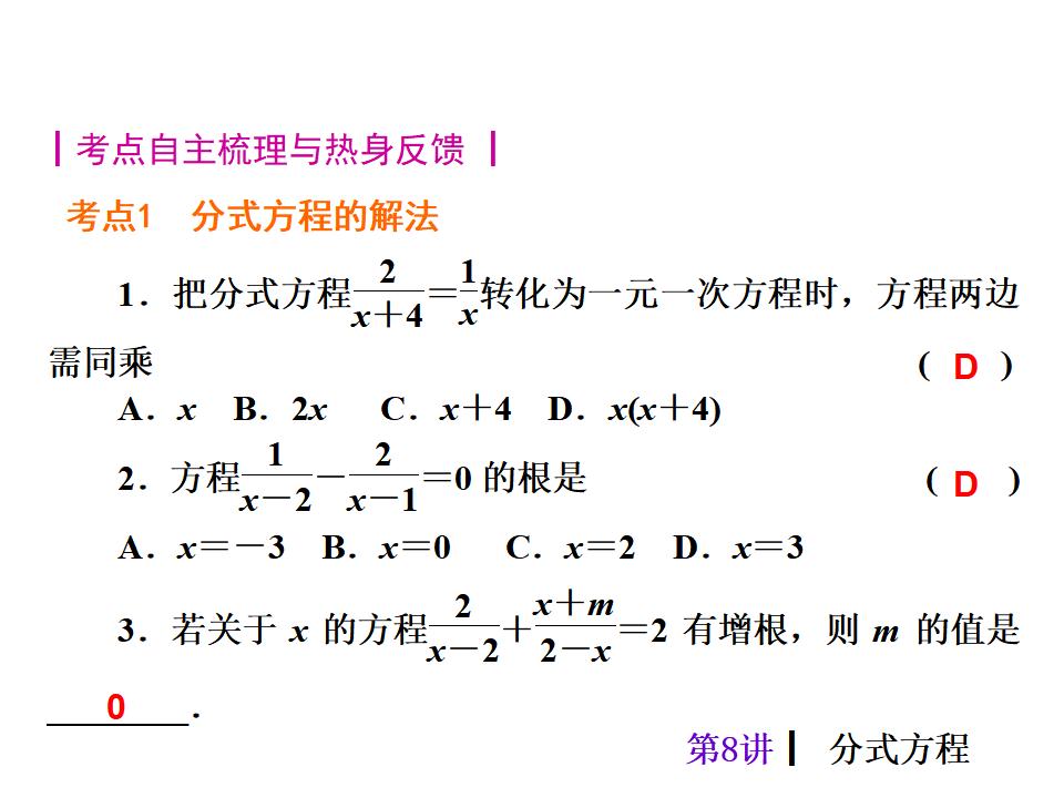 中考复习课件【第8讲】分式方程(20页)ppt课件.ppt
