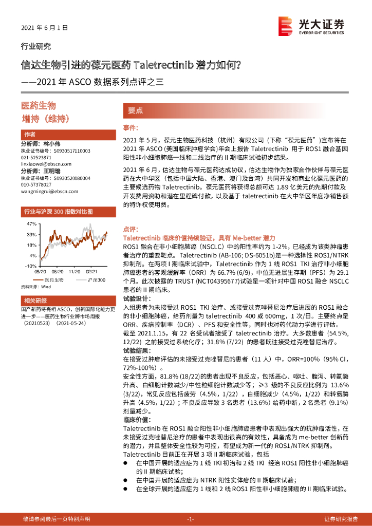 光大证券:医药生物:2021年ASCO数据系列点评之三-信达生物引进的葆元医药Taletrectinib潜力如何?.pdf