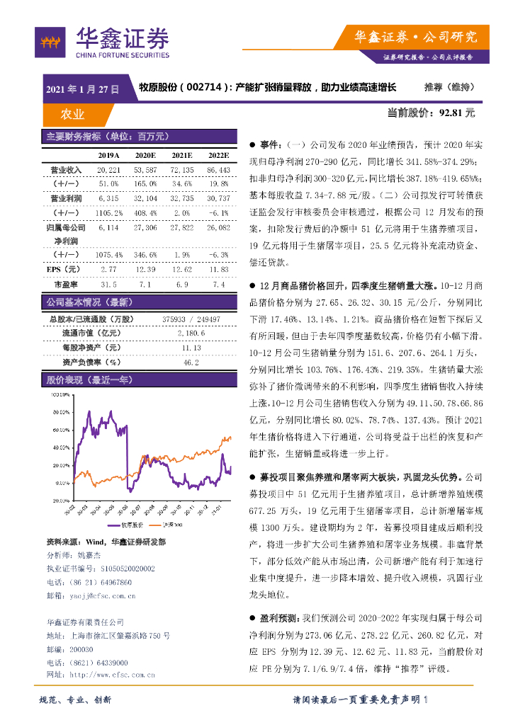华鑫证券:牧原股份(002714)-产能扩张销量释放,助力业绩高速增长.pdf
