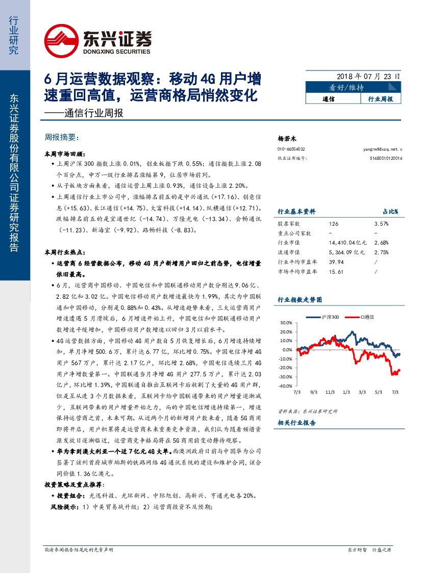 东兴证券:通信行业周报:6月运营数据观察:移动4G用户增速重回高值,运营商格局悄然变化.pdf