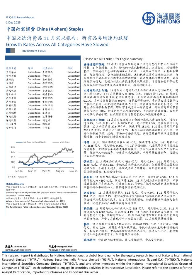 海通国际:中国必选消费品11月需求报告:所有品类增速均放缓.pdf