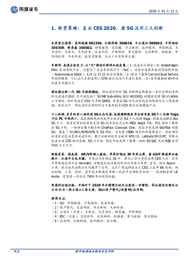 国盛证券:通信行业周报:直击CES 2020,看5G应用三大创新.pdf