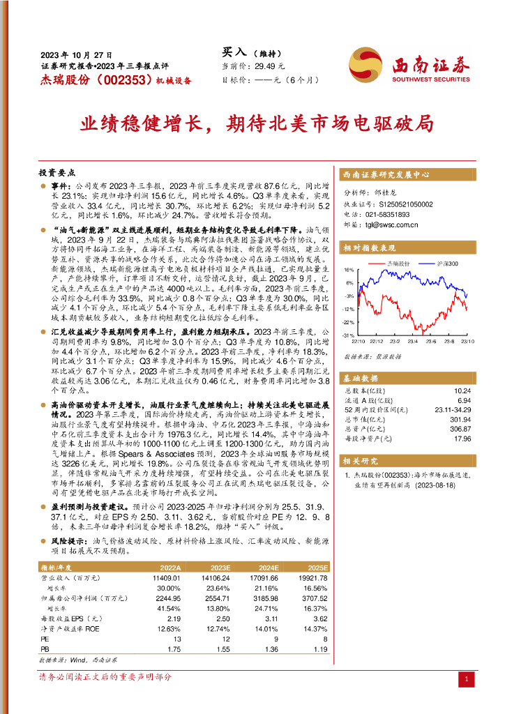 西南证券:杰瑞股份(002353)-2023年三季报点评:业绩稳健增长,期待北美市场电驱破局.pdf
