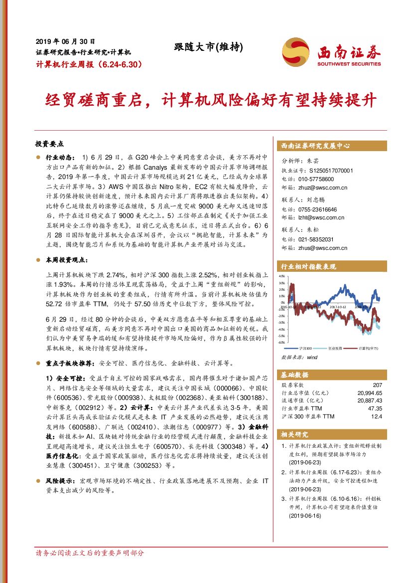 西南证券:计算机行业周报:经贸磋商重启,计算机风险偏好有望持续提升.pdf