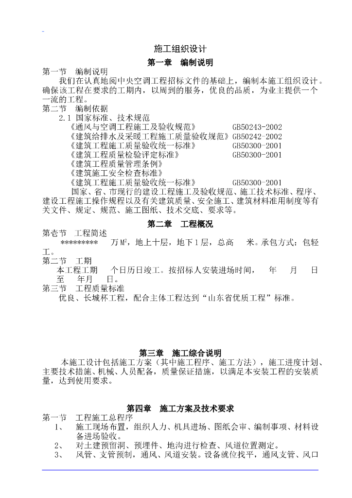 德州市10层医院病房楼空调施工组织设计方案.doc