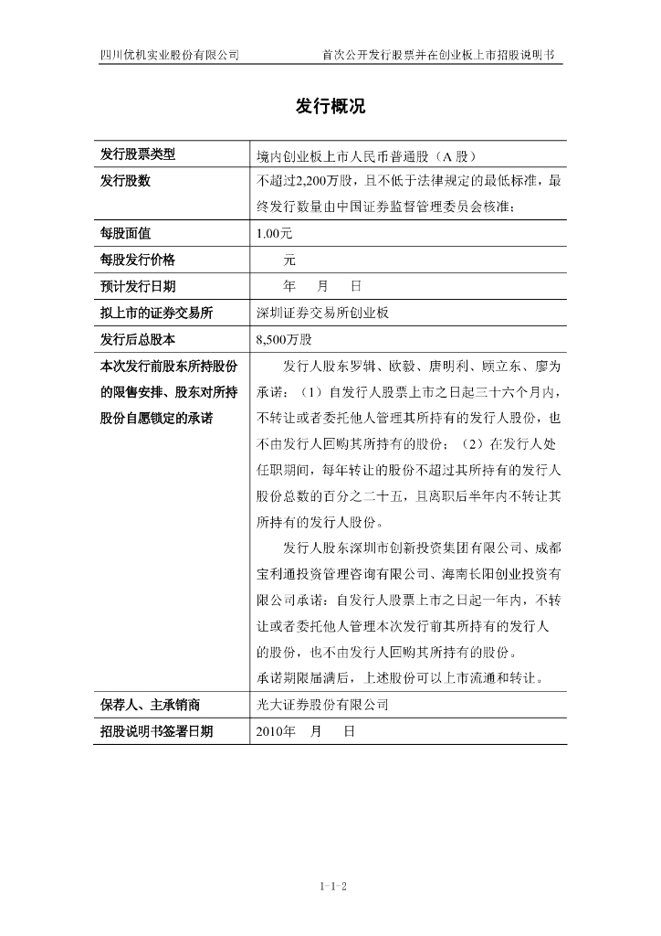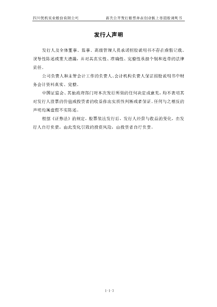 四川优机实业股份有限公司深交所创业板IPO上市招股说明书.pdf