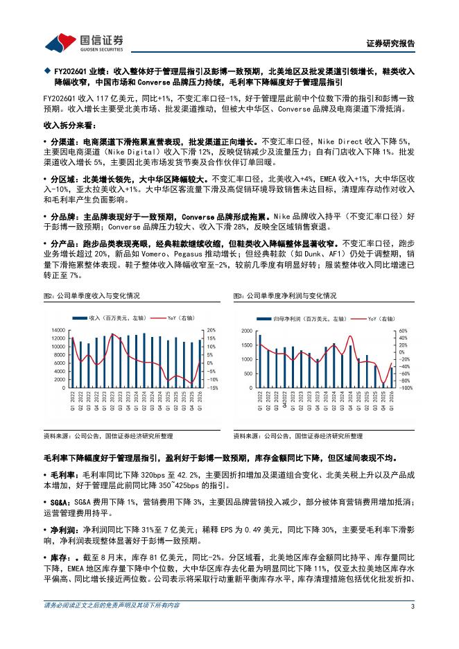 国信证券:纺织服装海外跟踪系列六十五:耐克一季度展现良好复苏势头,收入和毛利率均好于管理层指引.pdf