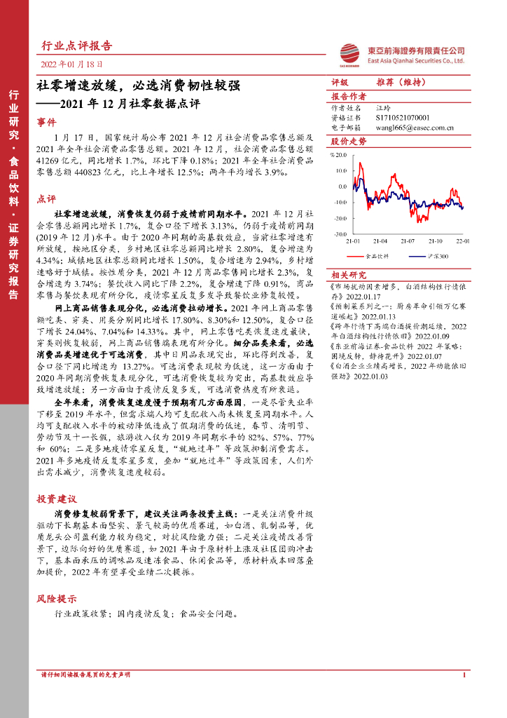 东亚前海证券:2021年12月社零数据点评:社零增速放缓,必选消费韧性较强.pdf