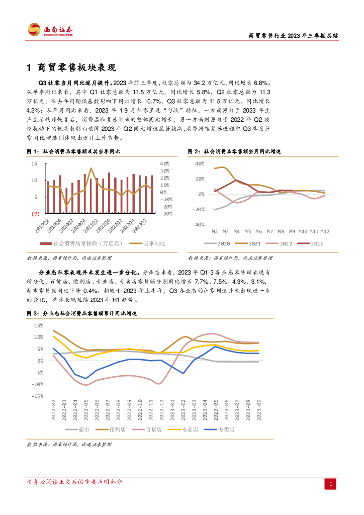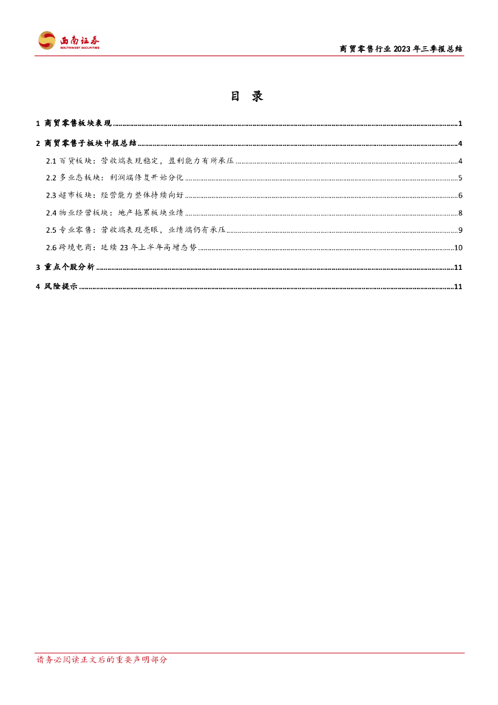 西南证券:商贸零售行业2023年三季报总结:超市行业持续向好,跨境电商延续高增.pdf