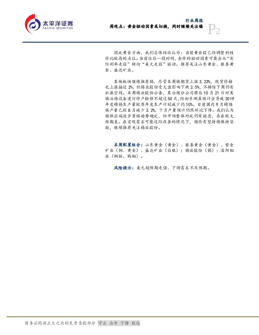 太平洋证券:金属、非金属与采矿周观点:黄金驱动因素或切换,同时继续关注锡.pdf