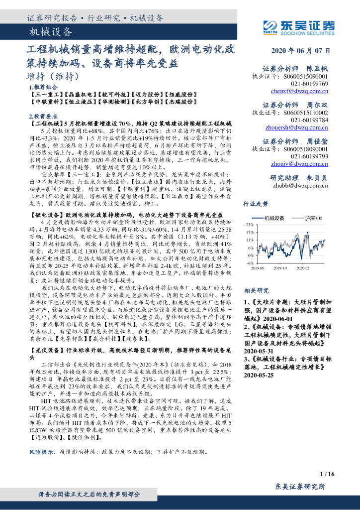 东吴证券:机械设备行业跟踪周报:工程机械销量高增维持超配,欧洲电动化政策持续加码、设备商将率先受益.pdf