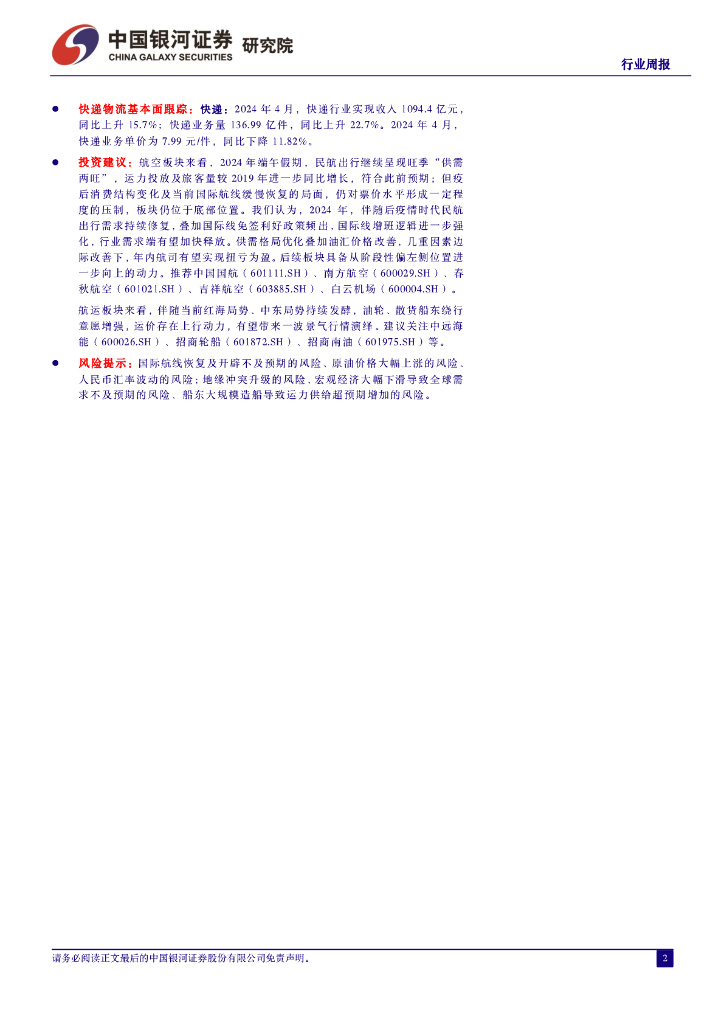 中国银河:交通运输行业周报:2024年端午预计民航旅客量为188.68万人次,较2019年同比增长9.2%.pdf