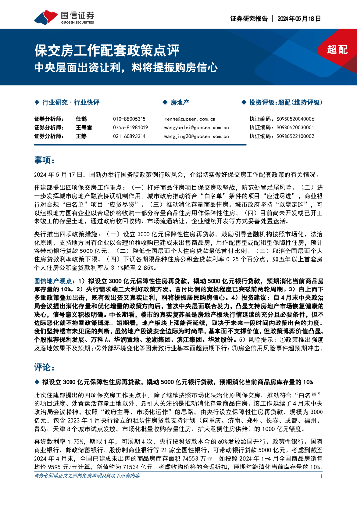 国信证券:保交房工作配套政策点评:中央层面出资让利,料将提振购房信心.pdf