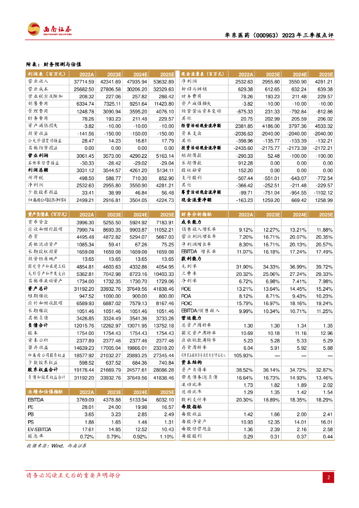 西南证券:华东医药(000963)-2023年三季报点评:工业板块稳健增长,医美业务表现亮眼.pdf