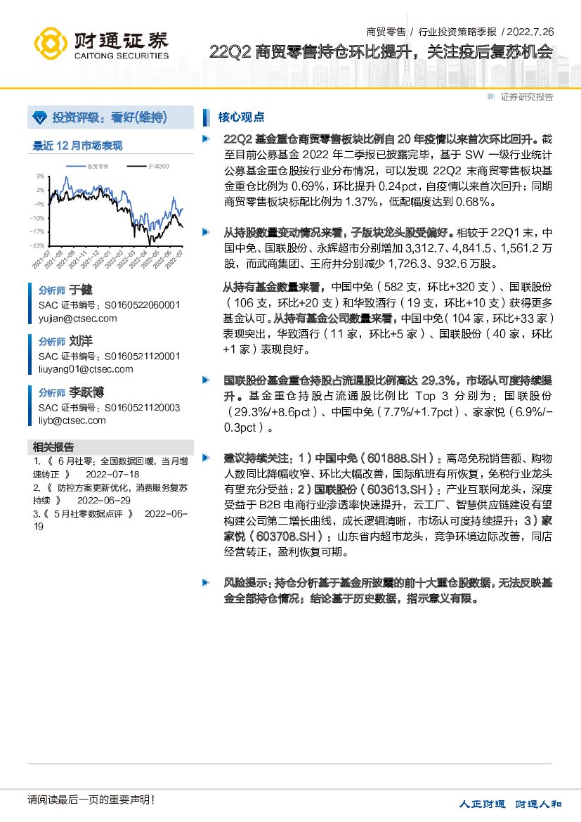 财通证券:商贸零售行业投资策略季报:22Q2商贸零售持仓环比提升,关注疫后复苏机会.pdf