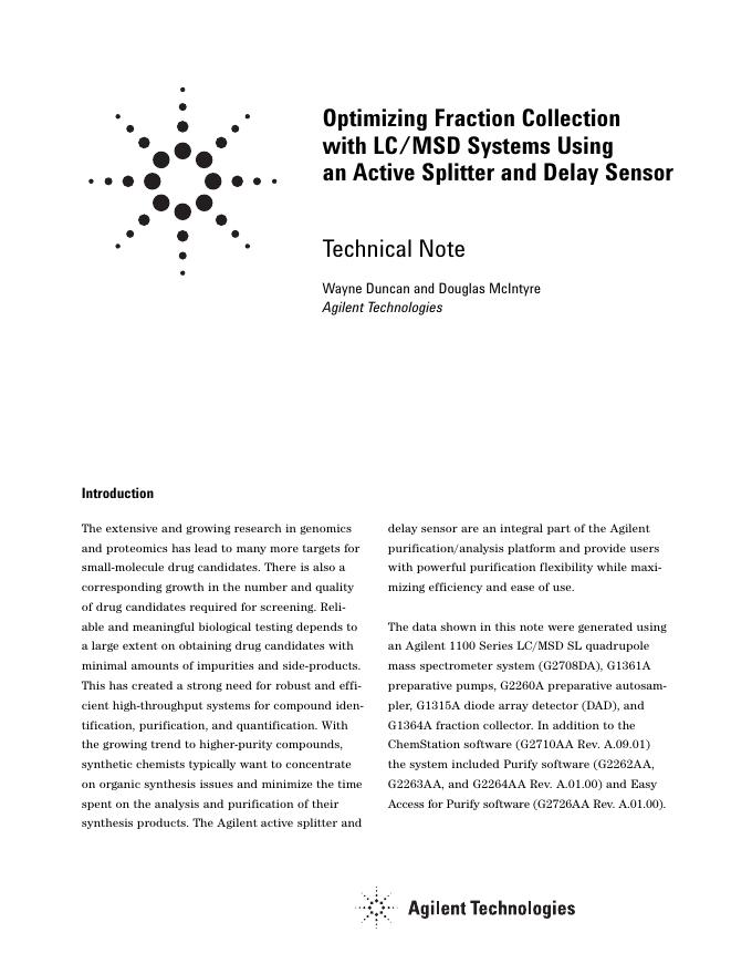 Agilent Technologies Optimizing Fraction Collection with LC/MSD Systems Using an Active Splitter and Delay Sensor 技术手册.pdf