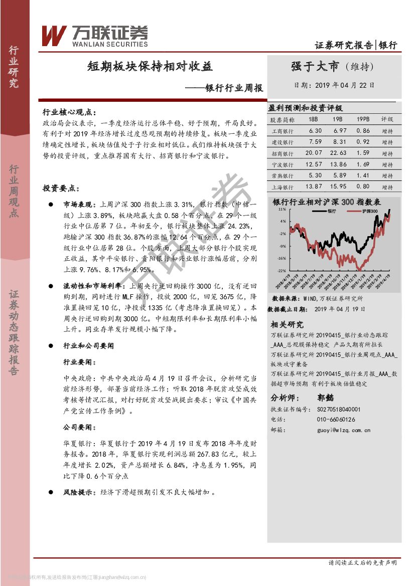 万联证券:银行行业周报:短期板块保持相对收益.pdf