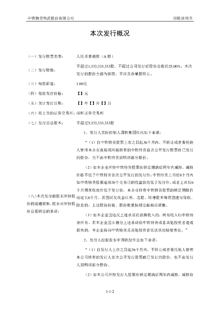 中铁特货物流股份有限公司深交所主板IPO上市招股说明书.pdf
