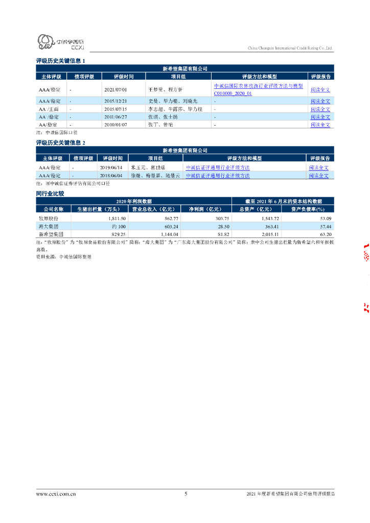 中诚信:新希望集团有限公司2021年度信用评级报告.pdf