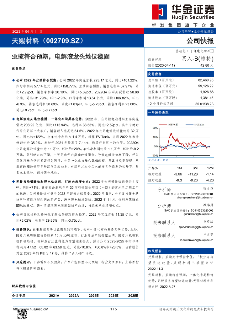 华金证券:天赐材料(002709)-业绩符合预期,电解液龙头地位稳固.pdf
