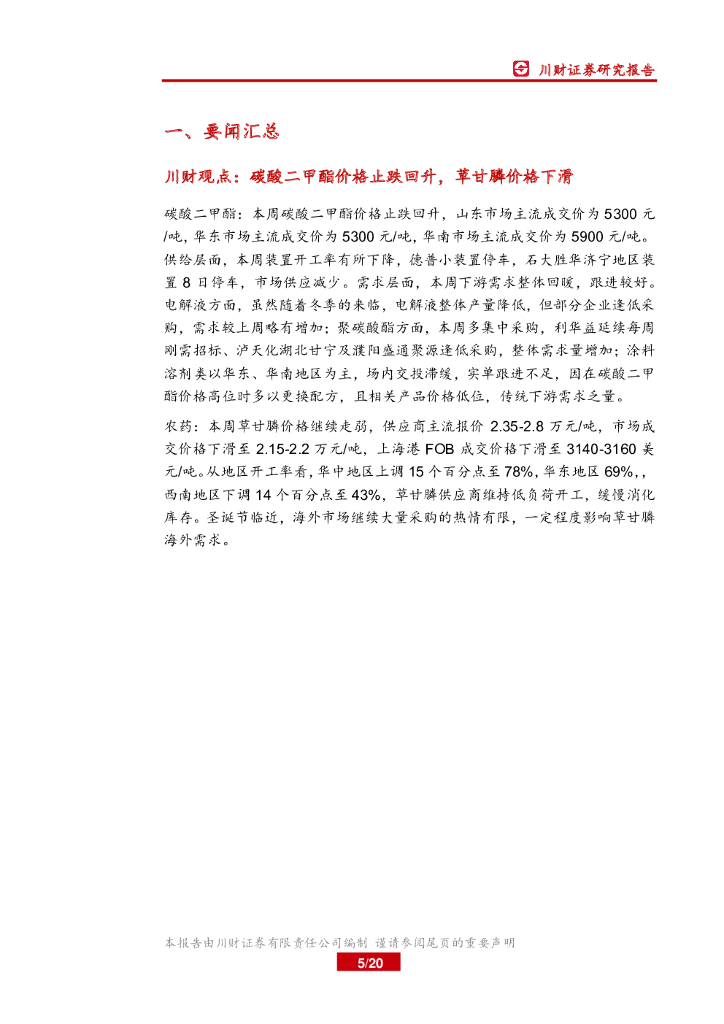 川财证券:基础化工行业周报:碳酸二甲酯价格止跌回升,草甘膦价格下滑.pdf