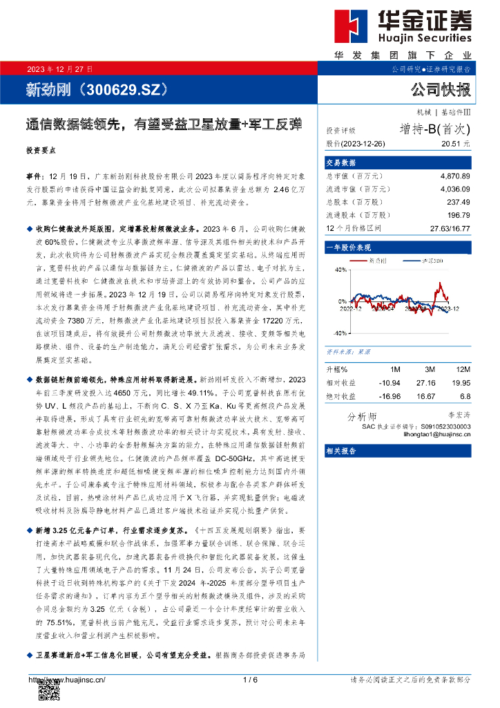 华金证券:新劲刚(300629)-通信数据链领先,有望受益卫星放量+军工反弹.pdf
