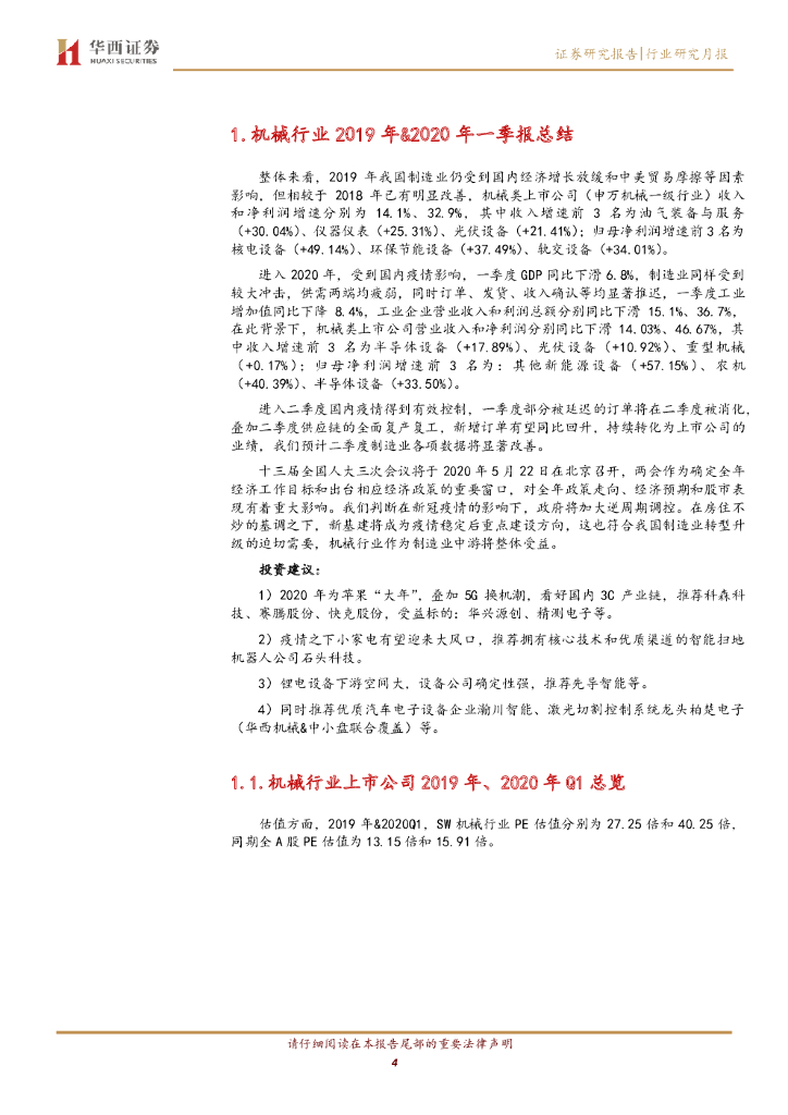 华西证券:2019年&2020年Q1机械公司业绩分析:疫情下的闪光点,重点关注半导体设备、光伏设备等.pdf