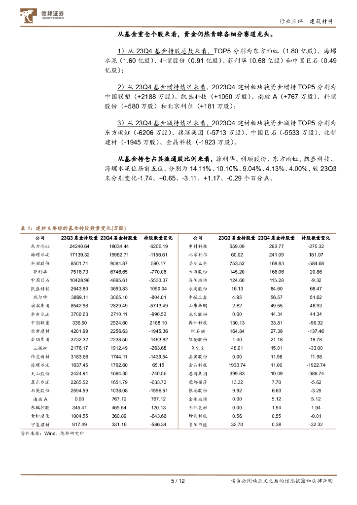 德邦证券:建材行业基金持仓点评:基金持仓环比下降,持仓比例到达新低位.pdf