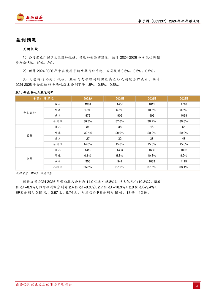 西南证券:李子园(605337)-毛利率持续提升,费用投入拉低净利率.pdf