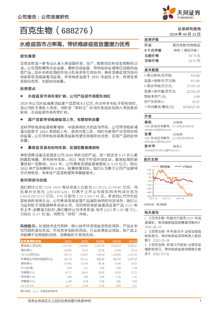 天风证券:百克生物(688276)-水痘疫苗市占率高,带状疱疹疫苗放量潜力优秀.pdf