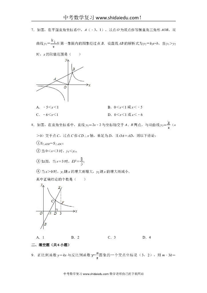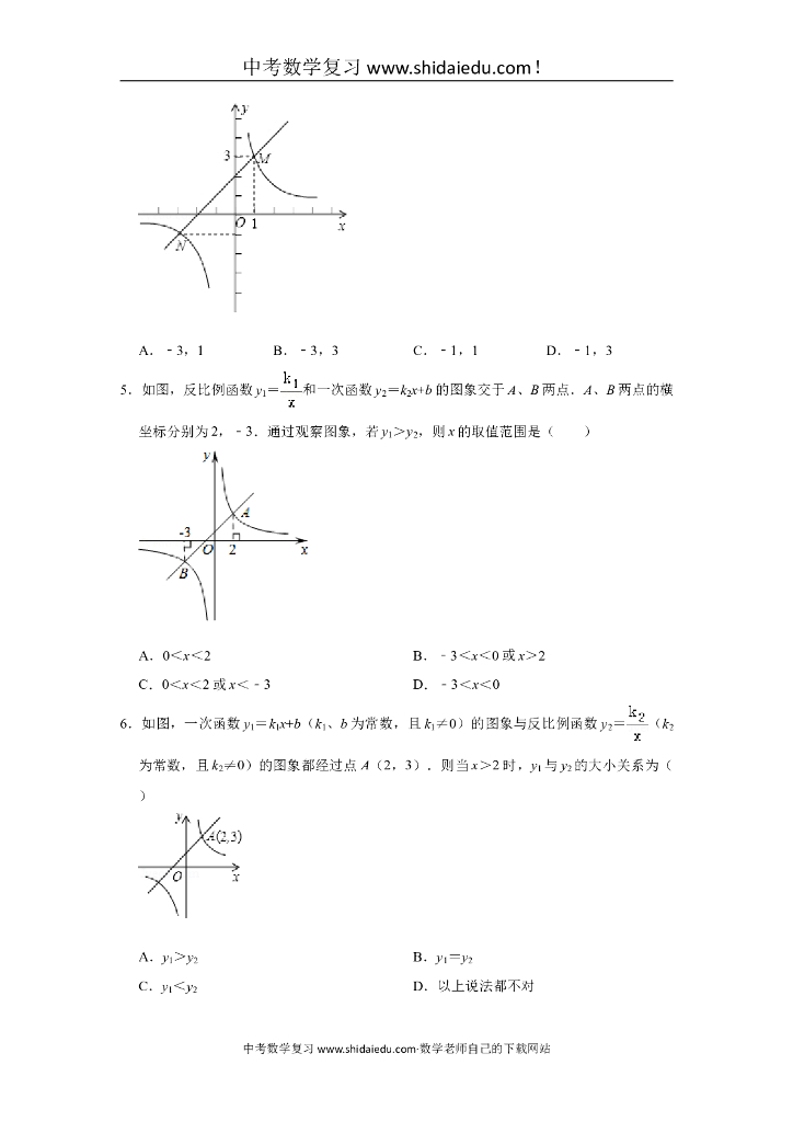 浙教新版八年级下学期-中考题同步试卷:6.3-反比例函数的应用(05).doc