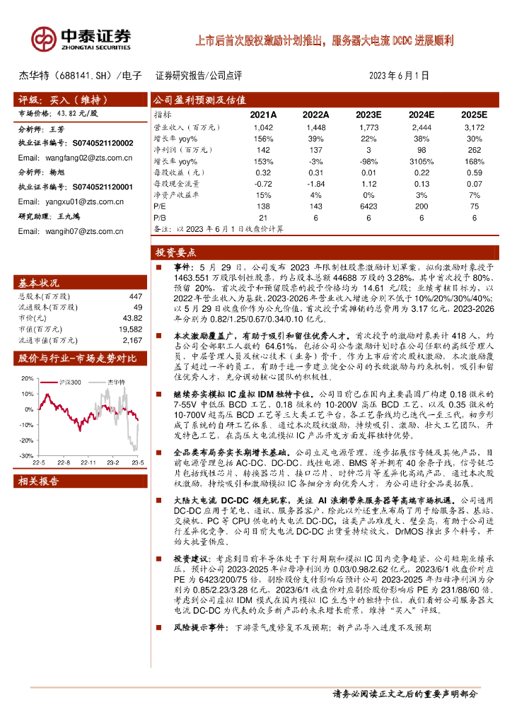 中泰证券:杰华特(688141)-上市后首次股权激励计划推出,服务器大电流DCDC进展顺利.pdf