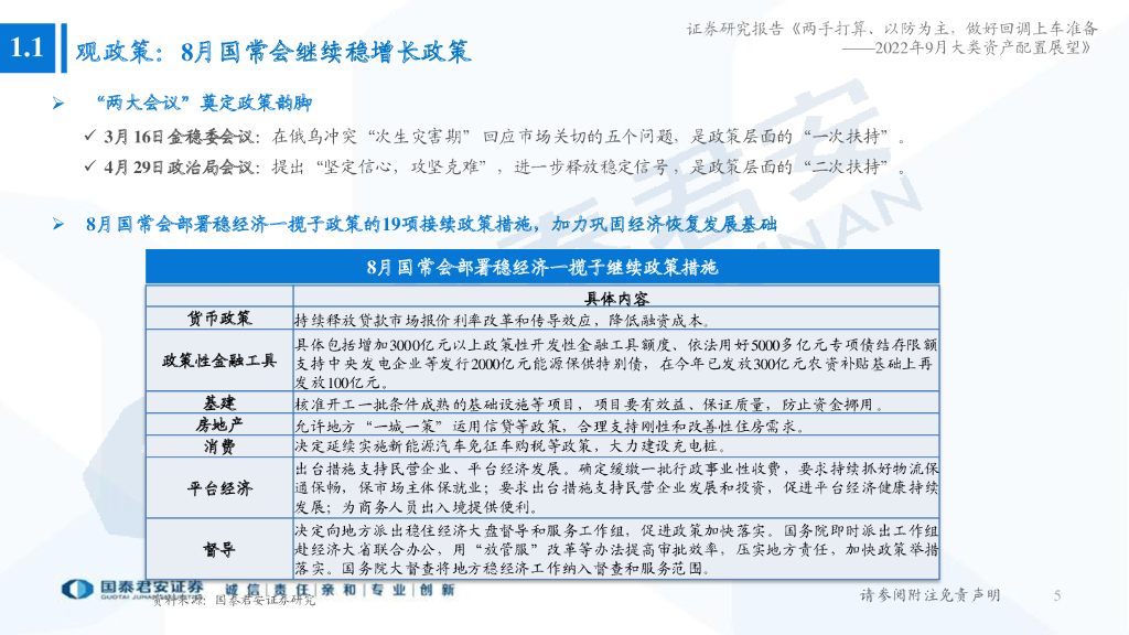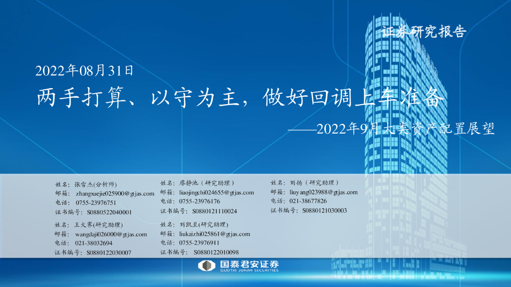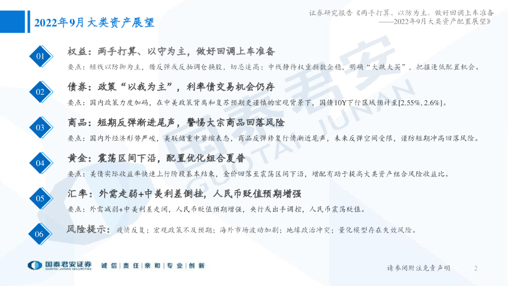 国泰君安:2022年9月大类资产配置展望:两手打算、以守为主,做好回调上车准备.pdf