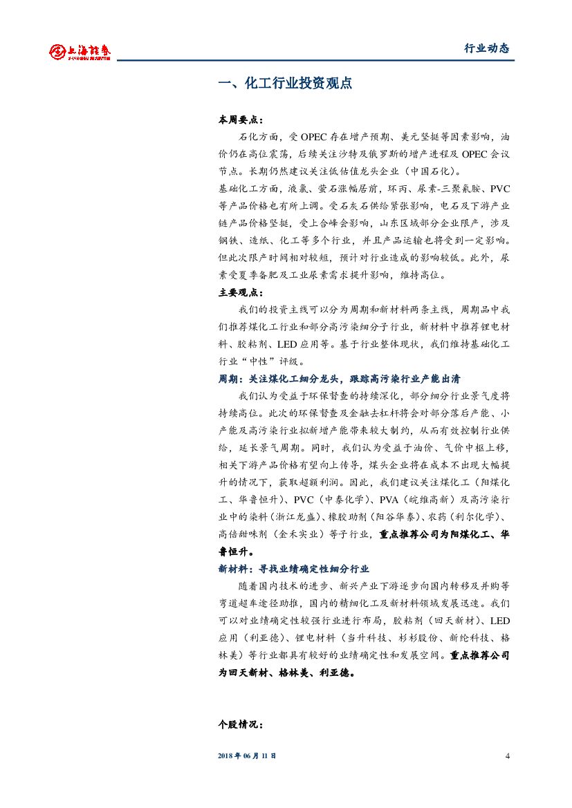 上海证券:化工行业周报:油价高位震荡,环丙、尿素、PVC再度上涨.pdf