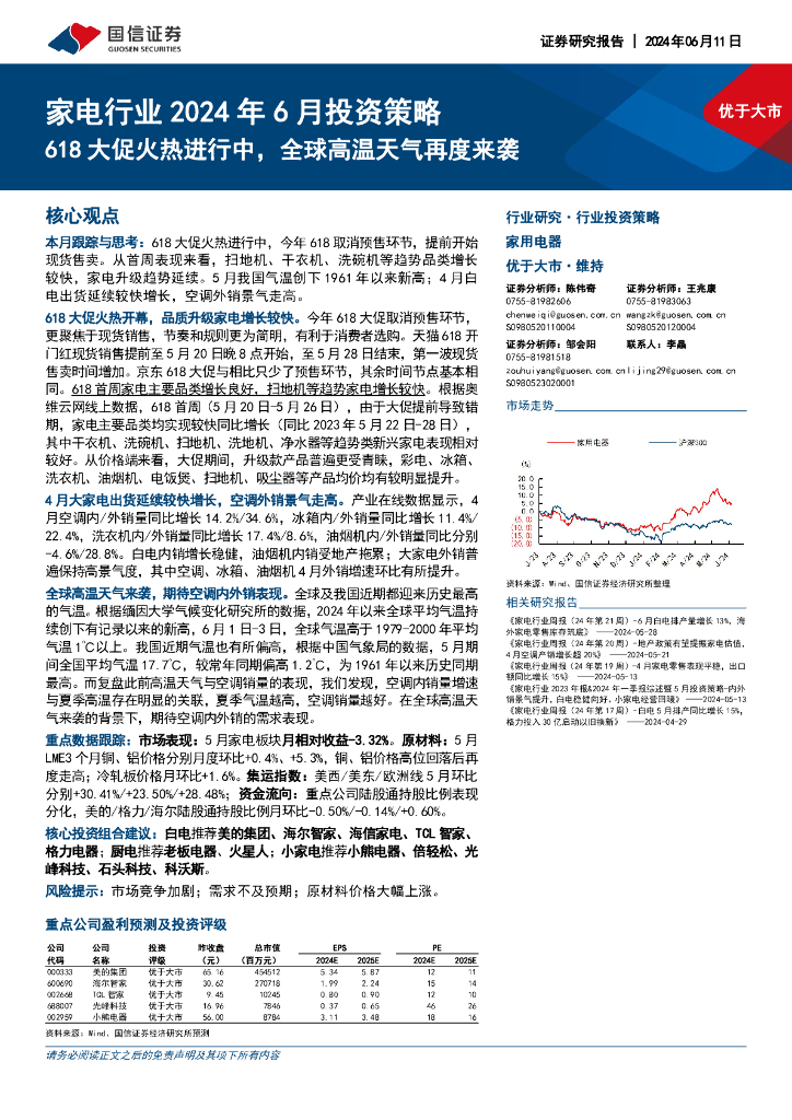 国信证券:家电行业2024年6月投资策略:618大促火热进行中,全球高温天气再度来袭.pdf