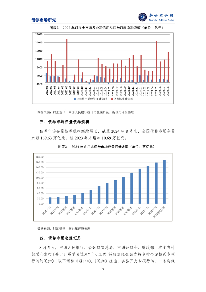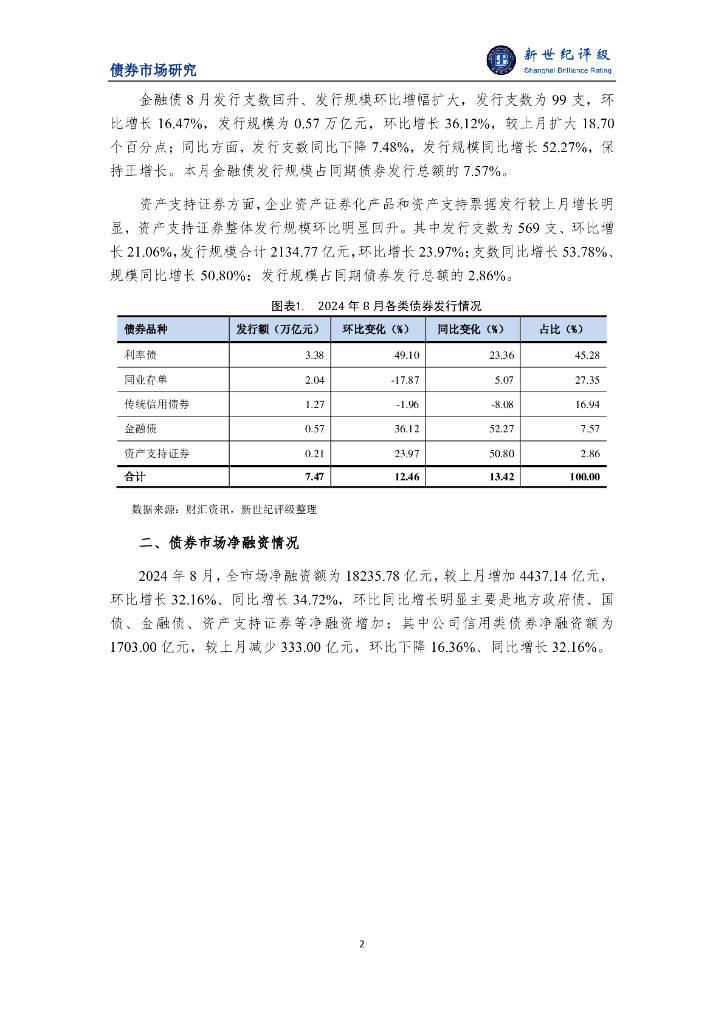 新世纪评级:多类券种发行增加 债市规模环比明显回升——2024年8月债券市场发行概况与政策汇总.pdf