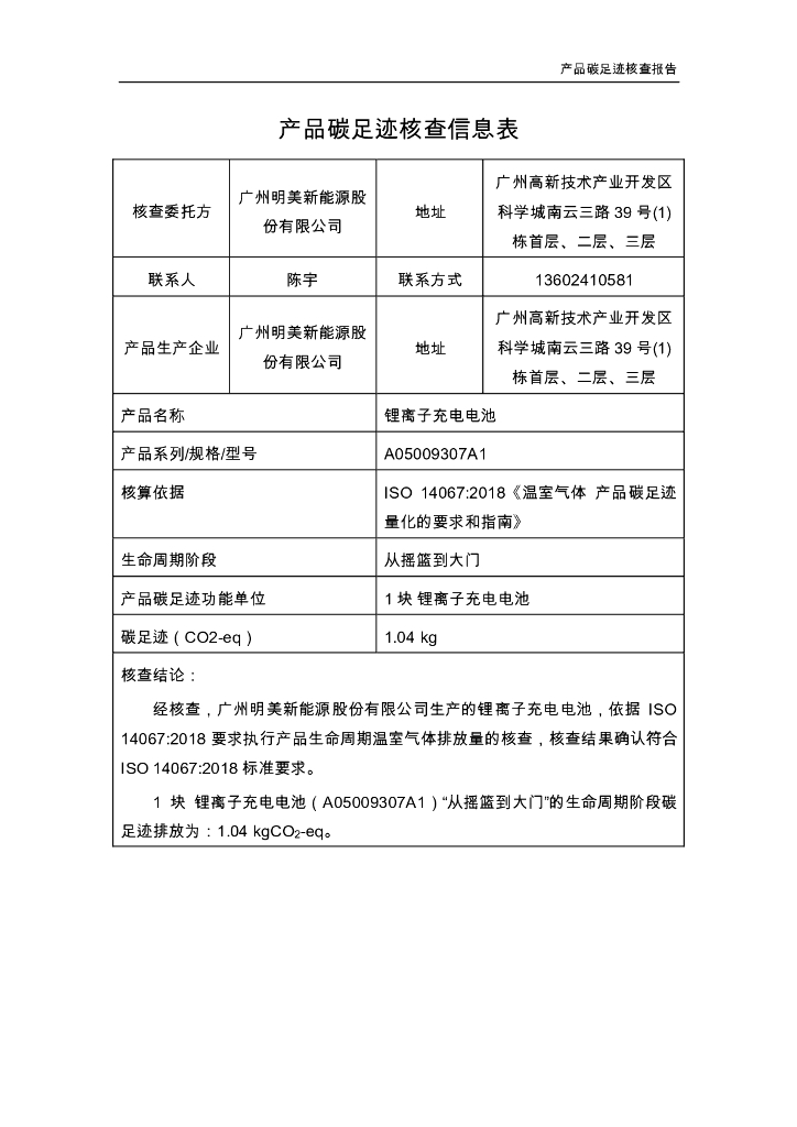 广州明美新能源股份有限公司:2024锂离子充电电池碳足迹核查报告.pdf