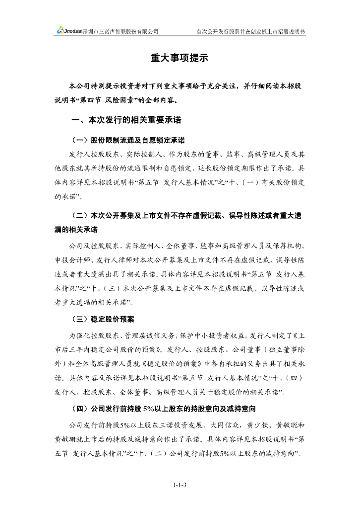 深圳市三诺声智联股份有限公司深交所创业板IPO上市招股说明书.pdf