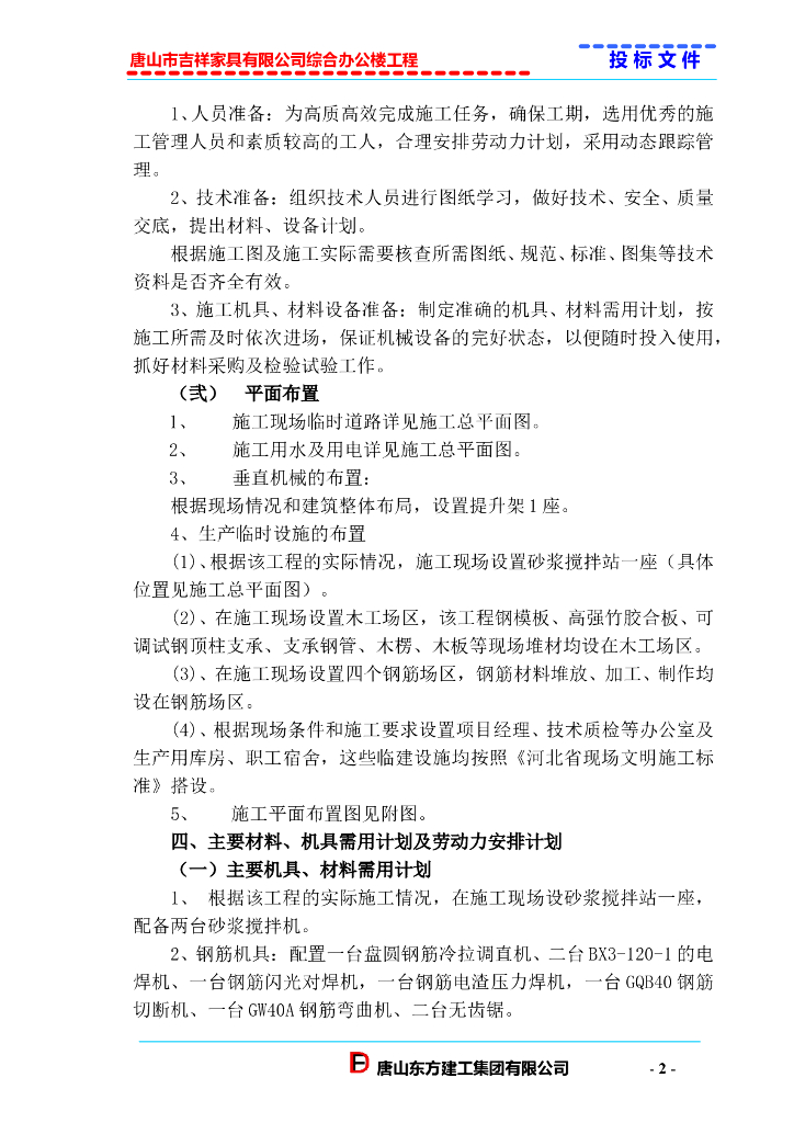 唐山市吉祥家具有限公司综合办公楼工程投标.doc