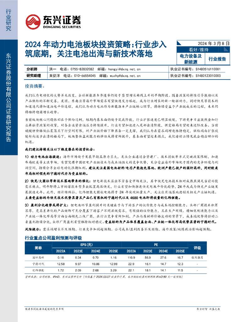 东兴证券:2024年动力电池板块投资策略:行业步入筑底期,关注电池出海与新技术落地.pdf