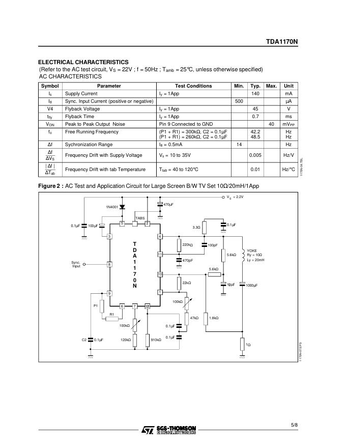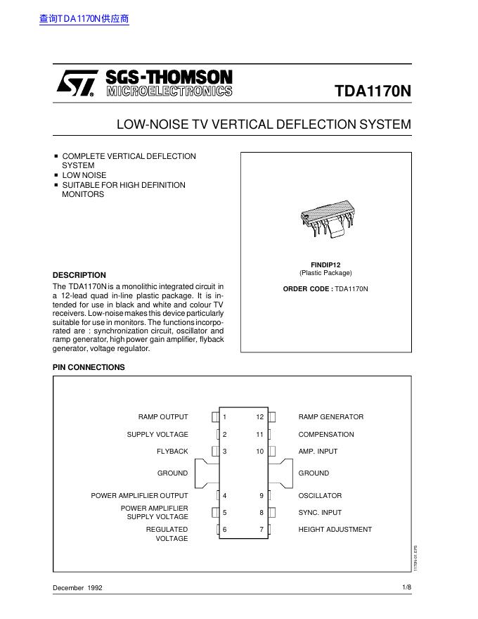 SGS-THOMSON TDA1170N LOW-NOISE TV VERTICAL DEFLECTION SYSTEM 数据手册.pdf