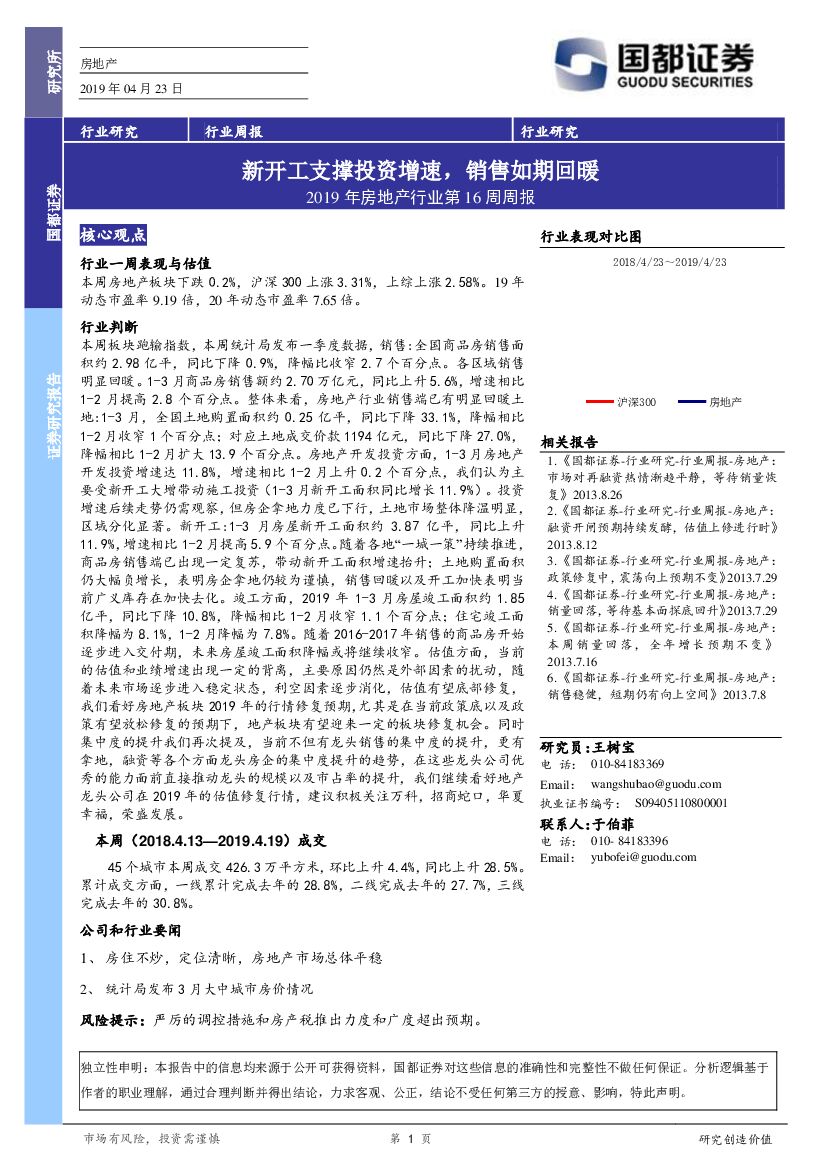 国都证券:2019年房地产行业第16周周报:新开工支撑投资增速,销售如期回暖.pdf