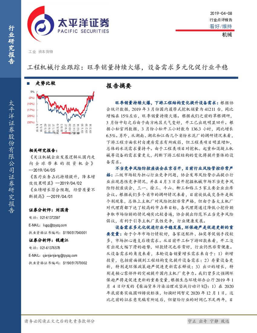 太平洋证券:工程机械行业跟踪:旺季销量持续火爆,设备需求多元化促行业平稳.pdf