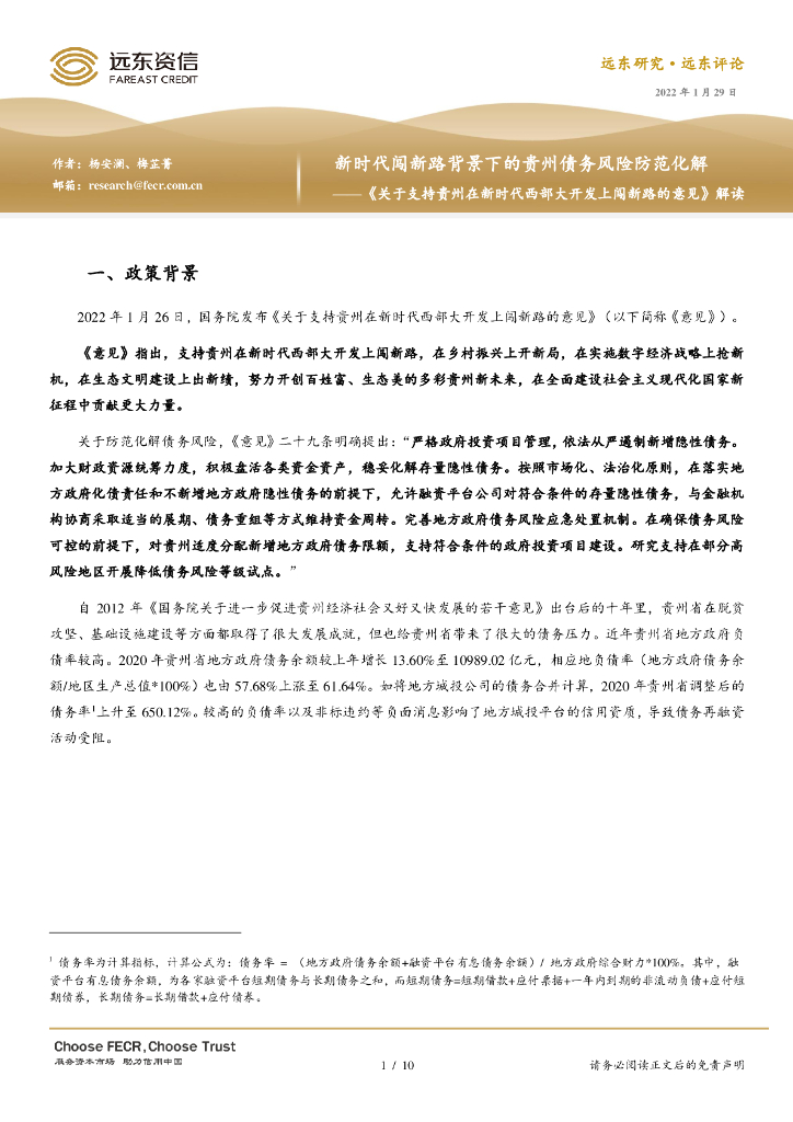 远东资信:新时代闯新路背景下的贵州债务风险防范化解——《关于支持贵州在新时代西部大开发上闯新路的意见》解读.pdf