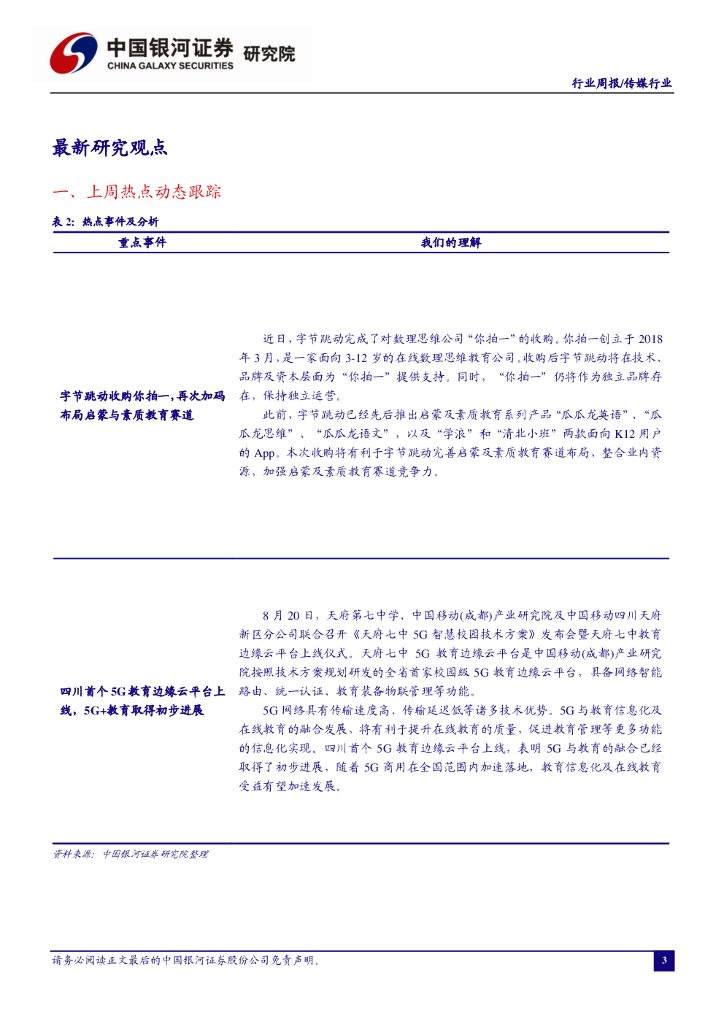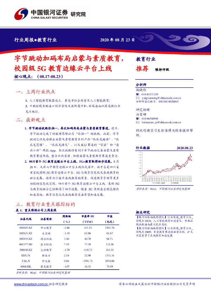 中国银河:教育行业周报:字节跳动加码布局启蒙与素质教育,校园级5G教育边缘云平台上线.pdf